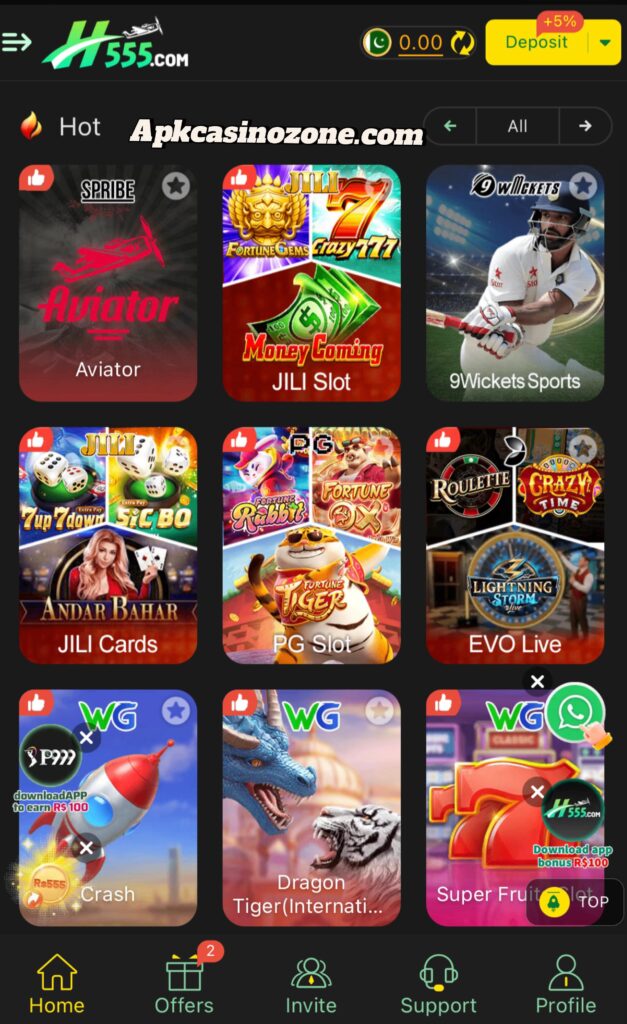 Are you Looking for a trustworthy real-money app to play exciting games and earn extra cash? If so, H555 Game APK is a new earning app where you win cash by playing games. It offers many casino games, from slots to sports betting, all with high-quality graphics. Moreover, you earn cash rewards and bonus coins by completing tasks in the app. Additionally, inviting friends adds a commission bonus, making H555 Game APK rewarding and fun.