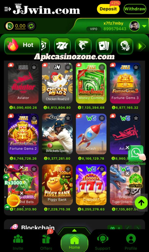 JJwin Game is a mobile casino platform from Pakistan that lets players gamble real money on games. It offers familiar game types like Teen Patti, slot machines, lotteries, and even sports betting. Users can download the app for free and start playing after a simple registration process. Because it targets Pakistani players, JJwin supports local currency (PKR) and popular payment methods like JazzCash and EasyPaisa. All transactions are encrypted and withdrawals via JazzCash or EasyPaisa are usually instant and secure.