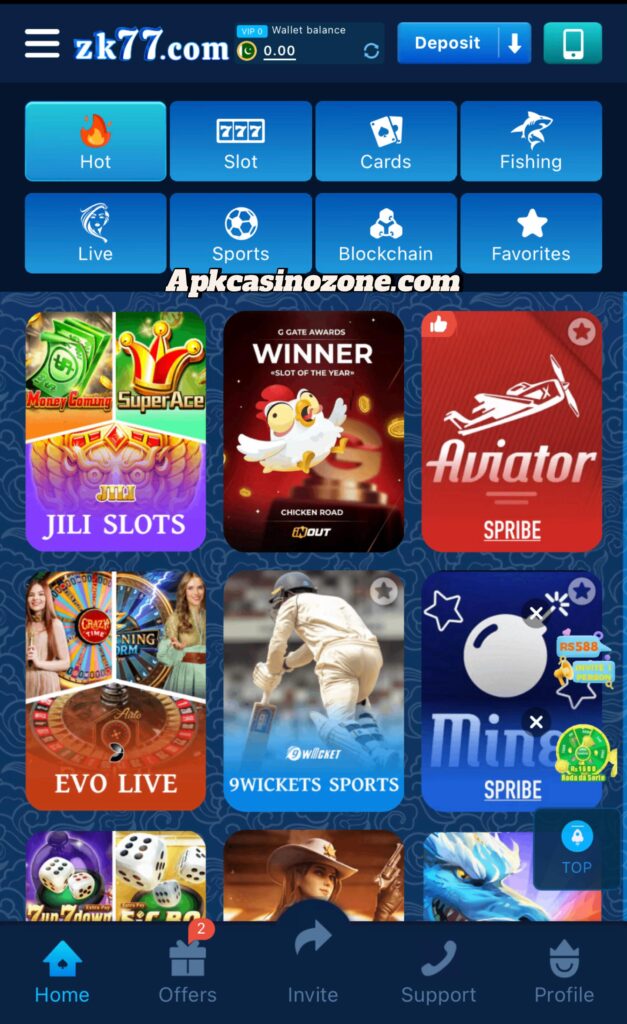 - Open your phone browser and go to the official ZK77 site or click on apkcasinozone.com.